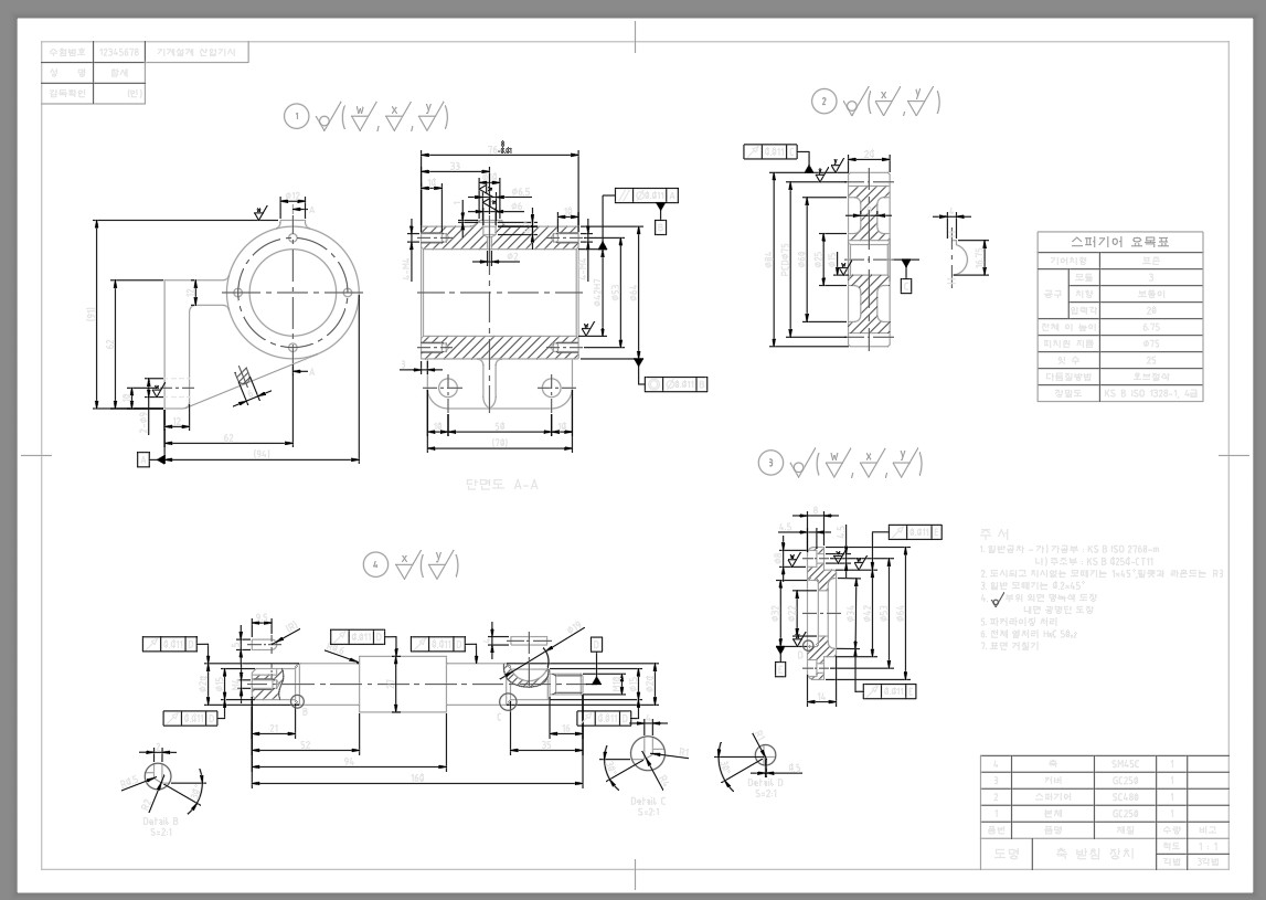 제가 실기시험 준비할 때 연습했던 도면인데 아직 있길래 갖고와봤습니다